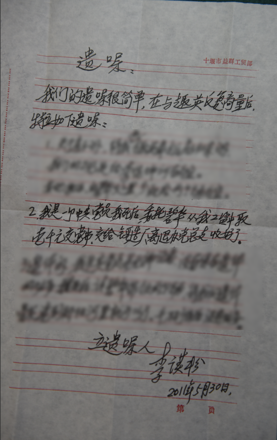 李謨松生怕他的愿望被疏忽或遺忘,趁他還能動筆的時候,就悄悄地在遺囑里面寫下了去世后向黨組織交納1000元黨費的心愿。20182月,彌留之際的李謨松拉著老伴的手說:“別忘了向黨組織交納我的黨費……”李謨松去世后,他的老伴才發現他的叮嚀和囑托不僅僅是口頭的交代,而且還寫進了遺囑,是真情實意對黨恩情的一片流露,感動的她兩行熱淚奪眶而出……她心里默默地說,老李,放心,我一定把你的遺愿向黨組織表達,實現你刻在骨子里的愿望。